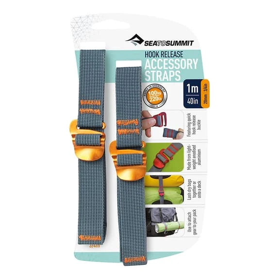 Accessory straps with anodized alloy buckles with quick release hook. They are very light and versatile. Perfect for securing our cargo to the luggage rack of the car, overloading on the outside of our backpacks or any other type of cargo safely and quickly. Supports great pressures.