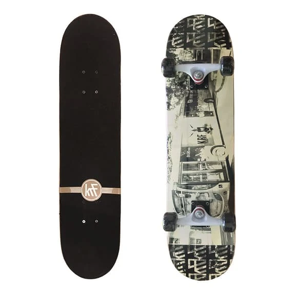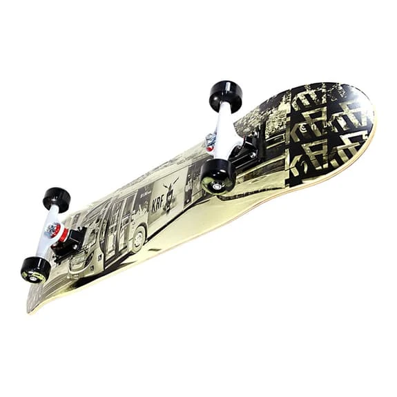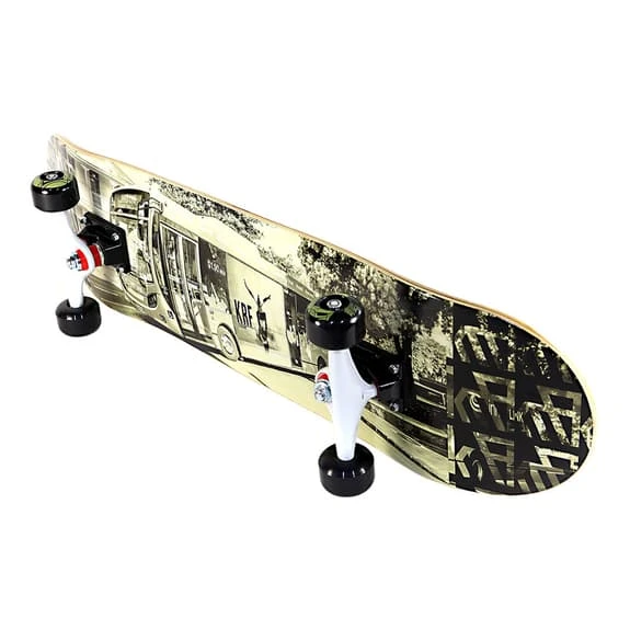 The KRF Bus Road Skateboard has a design based on iconic cities, and is ideal for intermediate and advanced levels, with a slightly curved concave deck and robustness due to its 7 layers of Canadian and Russian Maplewood.