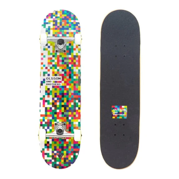 The Olsson And Brothers Pixel Skateboard is a slightly wider skateboard, for ramp and street. Its 8″ provides additional safety and confidence to larger skaters, or those looking for more comfort when skating. An off-road skateboard. All of this with extremely technical characteristics.