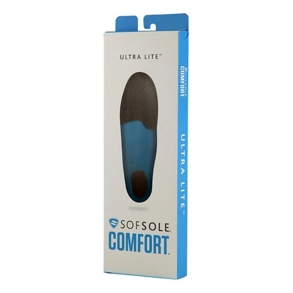 Sof Sole Ultra Lite insoles are made with memory foam that cushions and supports without compressing. Shape That Feels Great technology provides high-level comfort, strength and durability for everyday wear and physical activity.